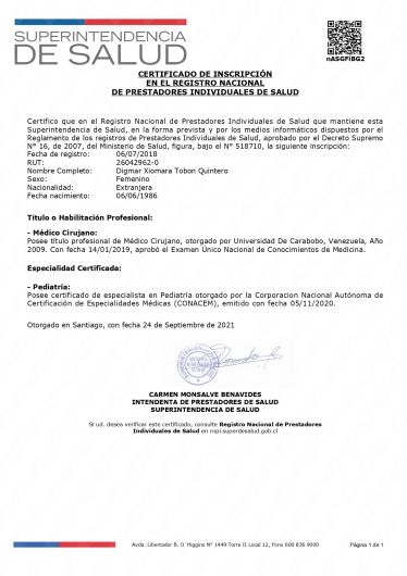 Medico especialista en pediatría y puericultura, cuento años de experiencia en pediatría, cursos y actualizaciones anuales, asistencia a congresos médicos nacionales e internacionales. ATIENDO PRESENCIAL. No tengo convenio con FONASA, pero se hace descuento al paciente fonasa enseñando certificado de afiliación, atenciòn particular se entrega boleta para reembolso NUEVA DIRECCION: HOCHSTETTER 599 EDIFICIO UNO K PISO 2 OFICINA 202 Horario: lunes, miercoles pm y viernes am y sabados (2 al mes)